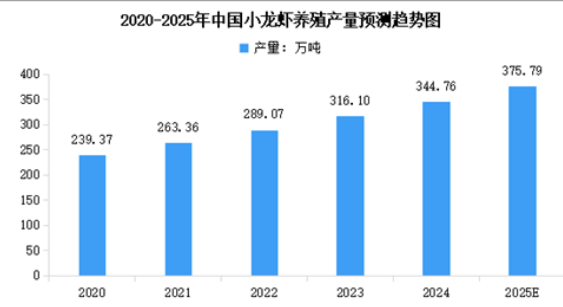 2024年,我國(guó)小龍蝦養(yǎng)殖面積3050萬(wàn)畝、產(chǎn)量344.76萬(wàn)噸,同比分別增長(zhǎng)3.39%和9.07%。小龍蝦養(yǎng)殖產(chǎn)量占全國(guó)淡水養(yǎng)殖總產(chǎn)量的9.76%,占比同比提升0.5個(gè)百分點(diǎn),位列我國(guó)淡水養(yǎng)殖品種第4位(前3位分別是草魚、鰱魚、鳙魚)。2025年中國(guó)小龍蝦養(yǎng)殖面積將達(dá)到3157萬(wàn)畝,產(chǎn)量將達(dá)到375.79萬(wàn)噸。