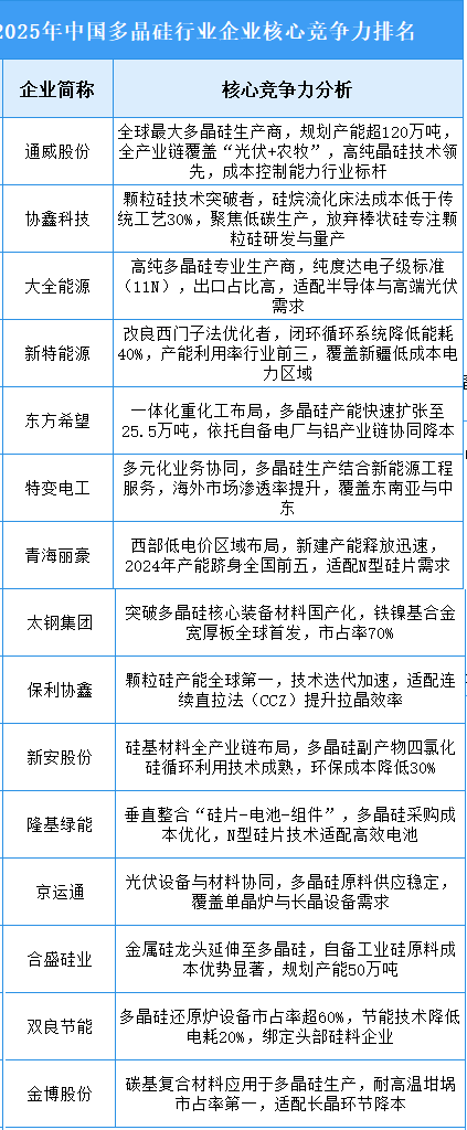 當(dāng)前中國(guó)多晶硅行業(yè)呈現(xiàn)規(guī);瘮U(kuò)張與技術(shù)路線分化并重的特征,頭部企業(yè)通過全產(chǎn)業(yè)鏈整合(從硅料到光伏電站)、低碳工藝突破(如顆粒硅、閉環(huán)生產(chǎn))、國(guó)產(chǎn)化替代(核心設(shè)備與材料)及區(qū)域成本優(yōu)勢(shì)(低電價(jià)區(qū)域布局)構(gòu)建競(jìng)爭(zhēng)壁壘。政策推動(dòng)下,產(chǎn)能過剩風(fēng)險(xiǎn)與技術(shù)迭代壓力并存,未來競(jìng)爭(zhēng)將聚焦于高純度產(chǎn)品研發(fā)(如半導(dǎo)體級(jí))、全球化市場(chǎng)滲透(東南亞、歐洲)及ESG體系優(yōu)化(能耗與排放管理),同時(shí)需應(yīng)對(duì)國(guó)際貿(mào)易壁壘與價(jià)格波動(dòng)的挑戰(zhàn)。