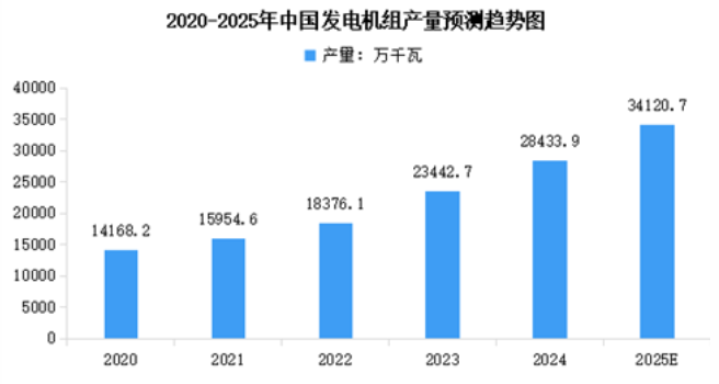 發(fā)電機(jī)是發(fā)電設(shè)備的核心,近年來中國(guó)發(fā)電機(jī)組產(chǎn)量快速增長(zhǎng)。截至2024年底中國(guó)發(fā)電機(jī)組累計(jì)產(chǎn)量28433.9萬千瓦,較上年增長(zhǎng)21.29%。2025年1-5月,中國(guó)發(fā)電機(jī)組累計(jì)產(chǎn)量達(dá)13742.9萬千瓦。2025年全年中國(guó)發(fā)電機(jī)組累計(jì)產(chǎn)量將達(dá)到34120.7萬千瓦。