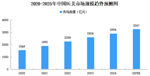 中國(guó)醫(yī)美行業(yè)近年來呈現(xiàn)高速增長(zhǎng)態(tài)勢(shì),已成為全球第二大醫(yī)美市場(chǎng)(僅次于美國(guó))。2024年中國(guó)醫(yī)美市場(chǎng)規(guī)模2894億元, 2025年中國(guó)醫(yī)美市場(chǎng)規(guī)模3247億元。
