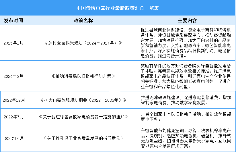 清潔電器是利用電能或其他能源驅(qū)動(dòng),通過(guò)機(jī)械、電子等技術(shù)手段實(shí)現(xiàn)清潔功能的設(shè)備,廣泛應(yīng)用于家庭、辦公室、商業(yè)場(chǎng)所等。近年來(lái),我國(guó)政府從財(cái)政補(bǔ)貼、稅收優(yōu)惠、技術(shù)研發(fā)、市場(chǎng)準(zhǔn)入、環(huán)保要求等多維度出臺(tái)了一系列政策,全方位支持清潔電器行業(yè)高質(zhì)量發(fā)展。