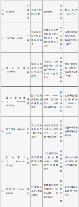 2025年全球軌交設(shè)備行業(yè)最具發(fā)展?jié)摿ζ髽I(yè)分析