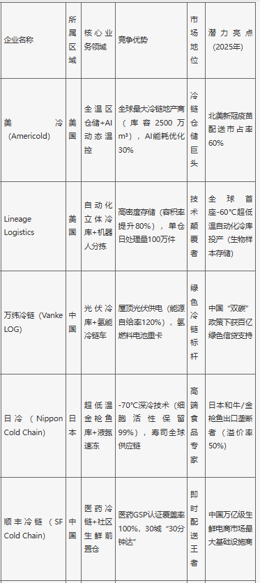 2025年全球冷鏈物流行業(yè)最具發(fā)展?jié)摿ζ髽I(yè)分析