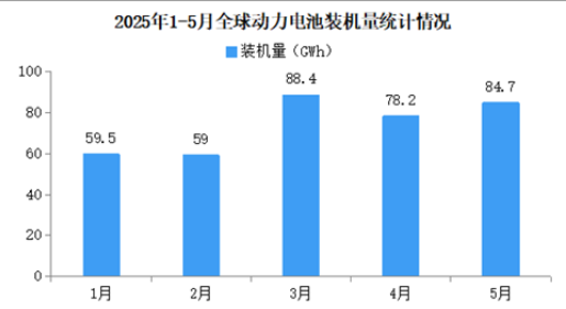 2025年5月全球動力電池裝機量約84.7GWh,同比增長30%。2025年1-5月全球動力電池裝機量約369.8GWh,同比增長35%。
