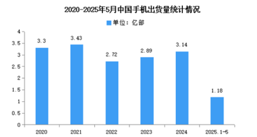 近年來,中國手機(jī)出貨量一直呈現(xiàn)下降趨勢,市場已經(jīng)接近飽和,消費(fèi)者對于手機(jī)的需求逐漸減弱。信通院數(shù)據(jù)顯示,2025年5月,國內(nèi)市場手機(jī)出貨量2371.6萬部,同比下降21.8%。2025年1-5月,國內(nèi)市場手機(jī)出貨量1.18億部,同比下降2.8%。
