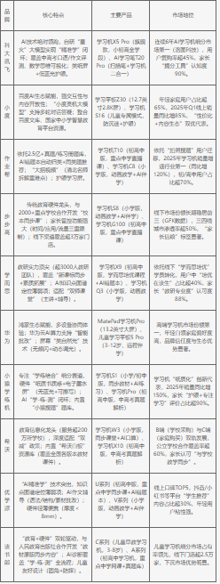 AI技術(shù)派以科大訊飛(“星火”大模型精準(zhǔn)學(xué)、連續(xù)6年細(xì)分市場第一)和小度(百度生態(tài)賦能、年輕家庭首選)為代表;內(nèi)容資源派中,作業(yè)幫(依托2.5億+題庫、銷量增速行業(yè)第一)和學(xué)而思(3000人教研團(tuán)隊(duì)、培優(yōu)學(xué)員高轉(zhuǎn)化)憑借教研與題庫優(yōu)勢搶占剛需;傳統(tǒng)硬件派如步步高(線下渠道覆蓋3萬家、三四線滲透超50%)和讀書郎(兒童學(xué)習(xí)機(jī)市占率領(lǐng)先、下沉市場穩(wěn)固)靠渠道與家長信任穩(wěn)守基本盤;創(chuàng)新細(xì)分派中,小猿學(xué)練機(jī)(紙質(zhì)化電子墨水屏、護(hù)眼評價(jià)超90%)以“學(xué)練結(jié)合”突圍,華為(鴻蒙生態(tài)、高端市場第一)則以多設(shè)備協(xié)同和品牌信任度吸引白領(lǐng)家庭。