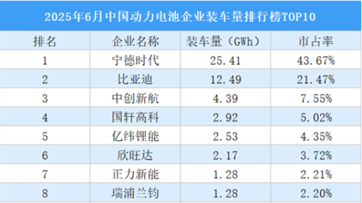 6月,我國動力電池裝車量58.2GWh,環(huán)比增長1.9%,同比增長35.9%。TOP10企業(yè)動力電池裝車量54.75GWh,市占率合計94.11%。