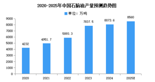 2024年,全國(guó)石腦油累計(jì)產(chǎn)量為8073.6萬(wàn)噸,與2023年相比增長(zhǎng)了236.1萬(wàn)噸,產(chǎn)量累計(jì)同比增長(zhǎng)3.6%。2025年產(chǎn)量將達(dá)8560萬(wàn)噸。