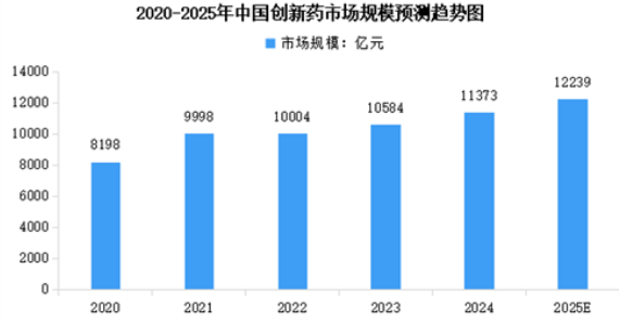 鼓勵創(chuàng)新藥發(fā)展是提升臨床用藥技術水平,增進人民群眾健康的重要渠道,也是支持我國生物醫(yī)藥產業(yè)自立自強、科技創(chuàng)新的重要手段。中國創(chuàng)新藥行業(yè)市場規(guī)模從2020年的0.82萬億元增長至2024年的1.14萬億元,年均復合增長率達8.53%。2025年中國創(chuàng)新藥市場規(guī)模將達到1.22萬億元。