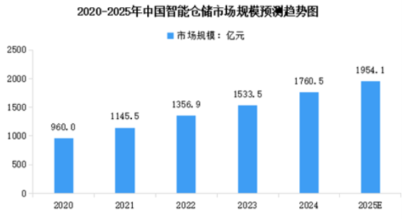 隨著技術(shù)的不斷進步和市場的不斷拓展,中國智能倉儲市場規(guī)模持續(xù)增長,并展現(xiàn)出強勁的發(fā)展勢頭。2024年中國智能倉儲市場規(guī)模約為1760.5億元,較上年增長14.8%。2025年中國智能倉儲市場規(guī)模將達到1954.1億元。