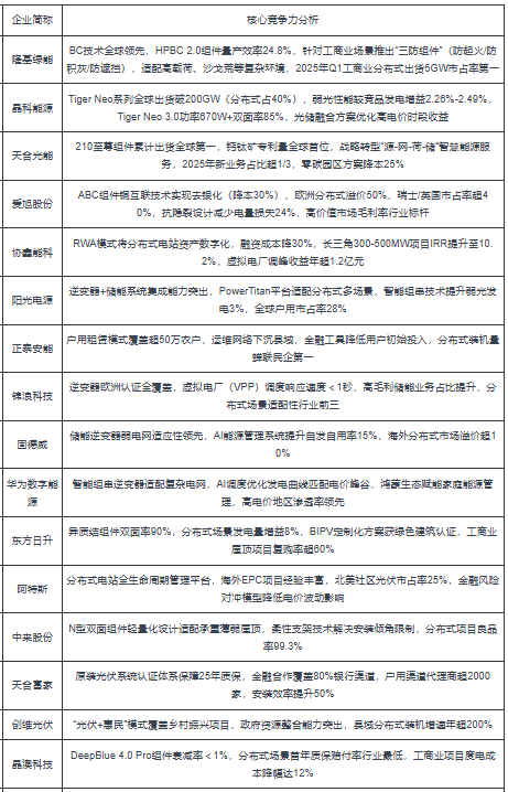 2025年中國分布式光伏重點企業(yè)核心競爭力