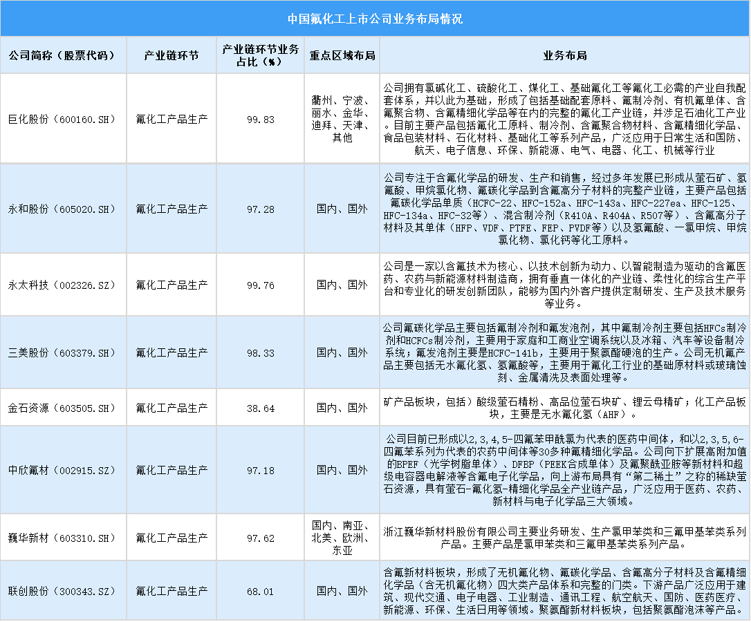 5.中國氟化工重點企業(yè)布局情況