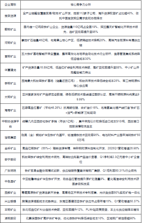 2025年中國鐵礦石重點企業(yè)核心競爭力