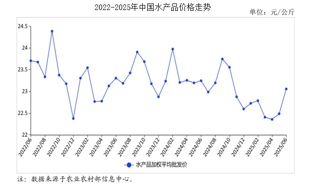供給方面,多數(shù)春季投苗的養(yǎng)殖水產(chǎn)品仍處于生長(zhǎng)期,伏季休漁持續(xù)、海洋捕撈產(chǎn)品供應(yīng)減少,水產(chǎn)品供給總體較少。需求方面,水產(chǎn)品需求穩(wěn)中有增,旅游、餐飲等對(duì)水產(chǎn)品消費(fèi)有帶動(dòng)作用。國(guó)家統(tǒng)計(jì)局?jǐn)?shù)據(jù)顯示,2025年5月份全國(guó)餐飲收入4578億元,同比增長(zhǎng)5.9%,全國(guó)餐飲市場(chǎng)呈現(xiàn)恢復(fù)態(tài)勢(shì),有利于水產(chǎn)品消費(fèi)需求釋放。中央氣象臺(tái)預(yù)計(jì),7月份遼河流域、黃河中下游、海河流域、淮河流域、珠江流域可能出現(xiàn)較重汛情,江南中東部、華南中東部、江淮、江漢東部、黃淮東部和南部等地有高溫天氣,或?qū)植康貐^(qū)水產(chǎn)品生產(chǎn)與流通帶來不利影響,需給予關(guān)注。綜合來看,預(yù)計(jì)近期水產(chǎn)品價(jià)格穩(wěn)中有漲。