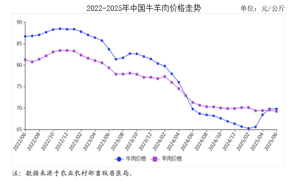 2025年6月,牛肉價(jià)格基本穩(wěn)定,羊肉價(jià)格小幅下跌。牛羊肉供應(yīng)保持穩(wěn)定,受夏季燒烤旺季及暑期旅游季拉動(dòng),消費(fèi)需求有所增加,預(yù)計(jì)我國(guó)牛羊肉價(jià)格總體保持當(dāng)前水平。