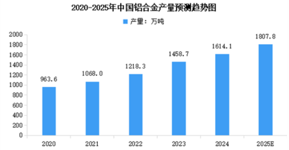 鋁合金具有良好的鑄造性能和塑性加工性能,以及密度小、耐氧化、延展性好、導(dǎo)熱及導(dǎo)電性能優(yōu)異等特點。鋁合金分為變形鋁合金和鑄造鋁合金兩類,廣泛應(yīng)用于航空航天、交通運輸、建筑、汽車、電力電子、機械設(shè)備等領(lǐng)域。2024年中國鋁合金產(chǎn)量達到1614.1萬噸,較上年增長10.65%。2025年上半年,中國鋁合金產(chǎn)量已達到909.7萬噸。2025年全年中國鋁合金產(chǎn)量將達到1807.8萬噸。