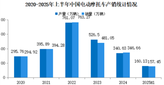6月,全行業(yè)完成電動摩托車產(chǎn)銷25.18萬輛和24.03萬輛,產(chǎn)銷量環(huán)比下降3.69%和10.06%,同比下降15.37%和22.53%。1-6月,全行業(yè)完成電動摩托車產(chǎn)銷160.13萬輛和157.45萬輛,產(chǎn)量同比增長0.39%,銷量同比下降3.57%。
