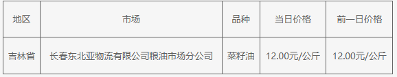 對2025年7月28日吉林省菜籽油批發(fā)市場價格最新行情監(jiān)測顯示:2025年7月28日吉林省菜籽油批發(fā)價格均價12元/公斤,昨日均價12元/公斤,今日價格較昨日上漲0元/公斤不等,比昨日漲幅0%。
