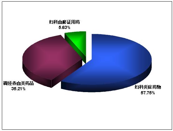 在2002年以來,婦科中成藥市場上 ,以婦科千金片、康乃馨抗宮炎片為代表治療婦科炎癥藥物占據(jù)了 57. 75%的市場份額。以烏雞白鳳丸為代表的調經(jīng)養(yǎng)血類藥品市場份額為 35. 21%,這兩類中成藥成為當前婦科用藥市場的兩大主力 ,不少品種依靠猛烈的廣告攻勢 ,在近幾年內(nèi)迅速竄紅。以治療子宮肌瘤和卵巢囊腫為代表的婦科血瘀證用藥約占婦科中成藥市場的 5. 63%,其市場規(guī)模遠小于婦科炎癥用藥和調經(jīng)養(yǎng)血類用藥。