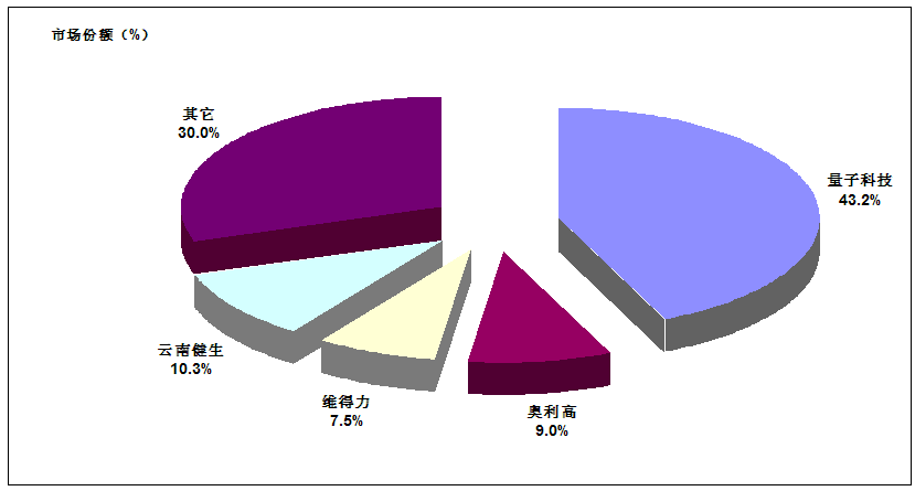 量子高科主要從事以低聚果糖、低聚半乳糖為代表的益生元系列產(chǎn)品的研發(fā)、生產(chǎn)和銷售。在低聚果糖細分領(lǐng)域,量子高科占據(jù)大約40%的市場份額,是該領(lǐng)域的龍頭企業(yè),同時是行業(yè)中少數(shù)可以生產(chǎn)高純度(95%以上)低聚果糖的企業(yè)。