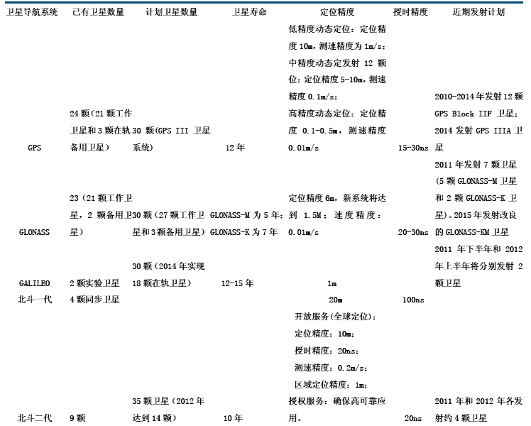 表:各國衛(wèi)星導航系統(tǒng)導航衛(wèi)星情況